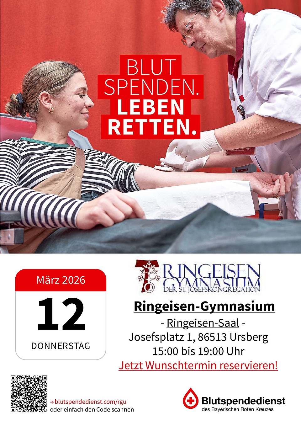 Am Donnerstag, 12. März 2026, findet zum zweiten Mal eine Blutspendeaktion in Ursberg statt.